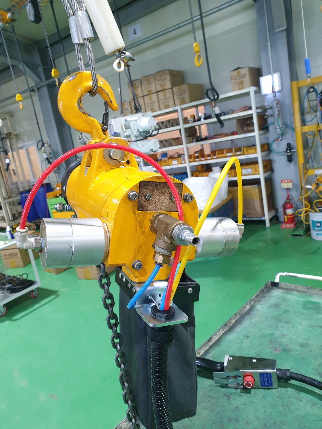產(chǎn)品介紹: KA1型氣動(dòng)葫蘆,分為KA1S固定式氣動(dòng)葫蘆、KA1M運(yùn)行式氣動(dòng)葫蘆兩種是韓國(guó)KHC品牌氣動(dòng)葫蘆,防爆性能好,被廣泛地應(yīng)用在化工、紡織、噴漆、物流、碼頭等易燃、易爆、高溫、